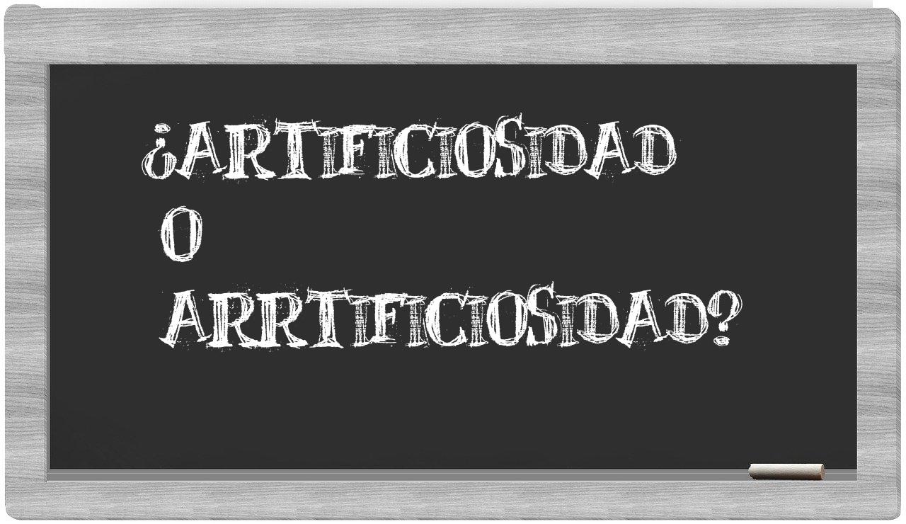 Cuando se presenta la disyuntiva entre artificiosidad y arrtificiosidad, la elección debería ser clara, pues únicamente artificiosidad se encuentra debidamente reconocida en el Diccionario de la Real Academia Española, mientras que arrtificiosidad no figura en su listado oficial.