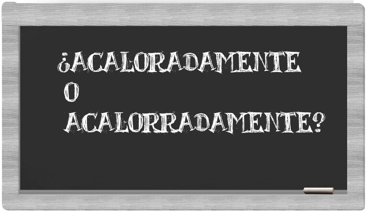 Cuando se trata de la distinción entre acaloradamente y acalorradamente, no hay lugar para la incertidumbre, puesto que únicamente acaloradamente es la forma adecuada; por otro lado, acalorradamente no figura en el léxico del Diccionario de la Real Academia Española.