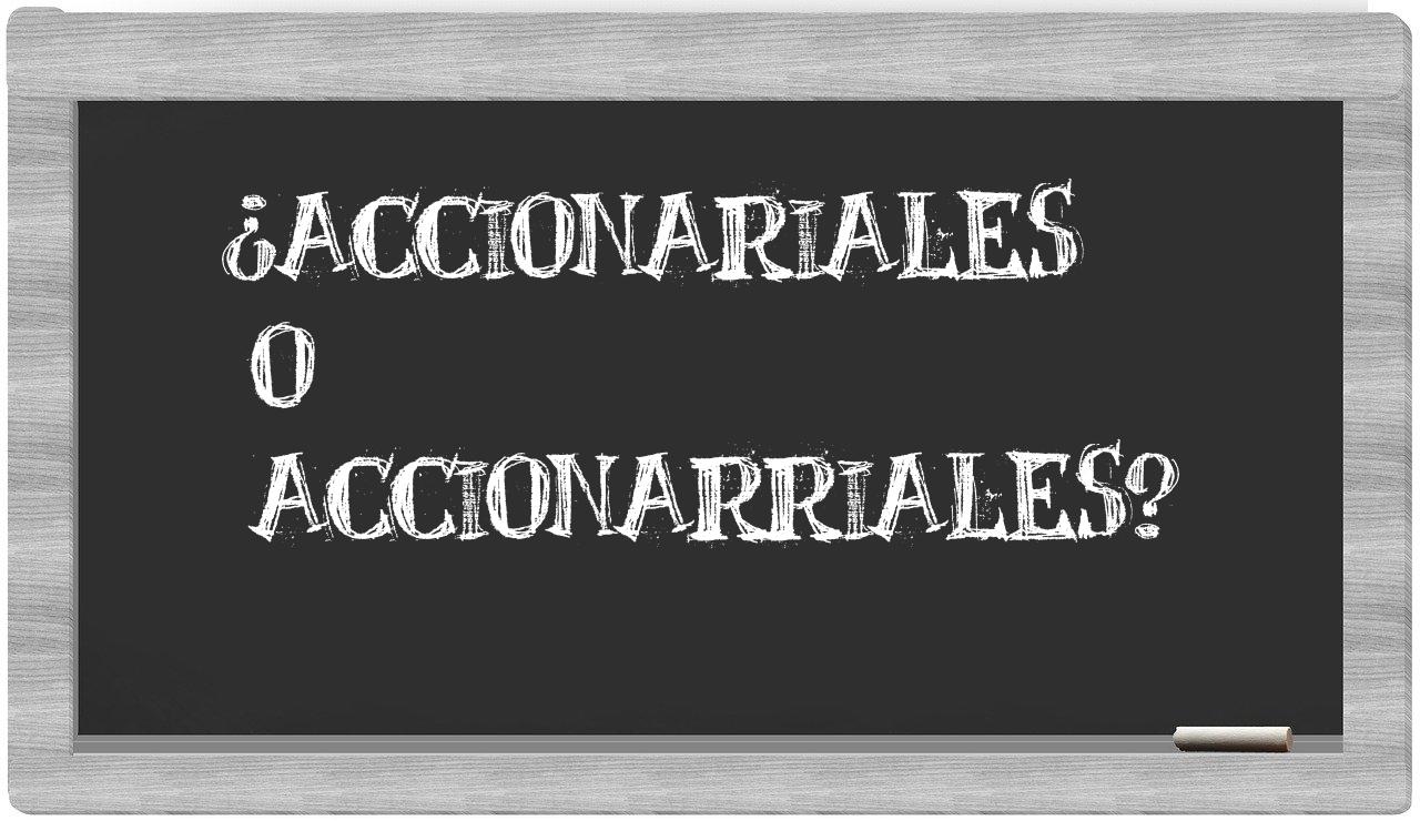 Cuando se trata de la elección entre accionariales y accionarriales, es crucial que no te generes incertidumbre, pues únicamente accionariales se encuentra correctamente redactada. Por otro lado, accionarriales carece de reconocimiento en el Diccionario de la Real Academia de la Lengua.