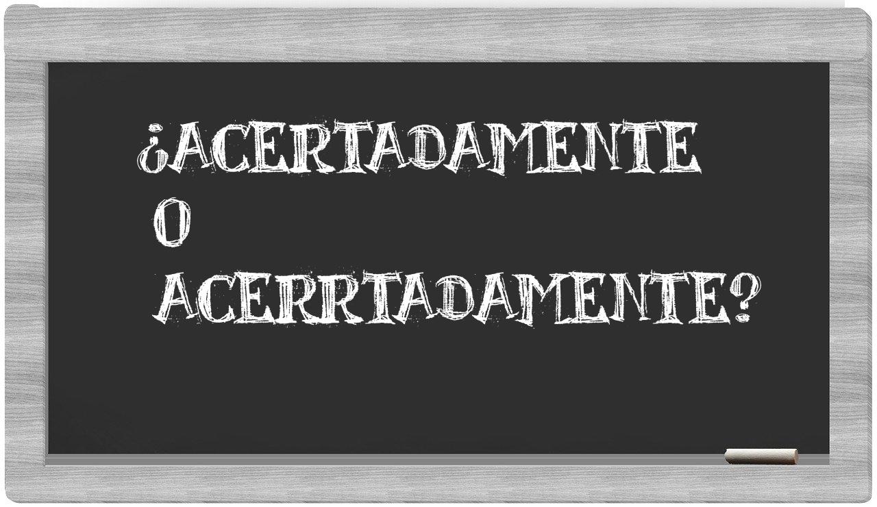 Cuando te enfrentes a la elección entre acertadamente y acerrtadamente, no vaciles ni por un instante, puesto que únicamente acertadamente es la opción adecuada, mientras que acerrtadamente carece de reconocimiento en el Diccionario de la Real Academia Española.