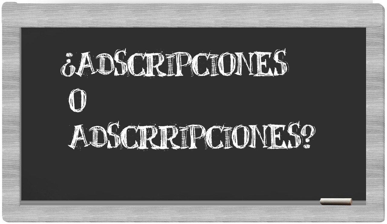 En la situación particular que involucra los términos adscripciones y adscrripciones, es fundamental que no vaciles, puesto que únicamente se encuentra debidamente escrita la palabra adscripciones. La palabra adscrripciones no está registrada en el Diccionario de la Real Academia Española.