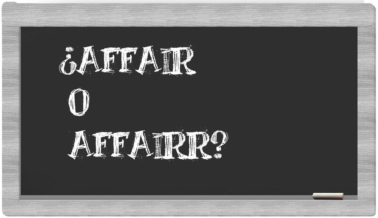 Cuando te enfrentes a la elección entre affair y affairr, no vaciles ni un instante, puesto que únicamente affair es la forma adecuada. Recuerda que affairr carece de reconocimiento en el Diccionario de la Real Academia Española.
