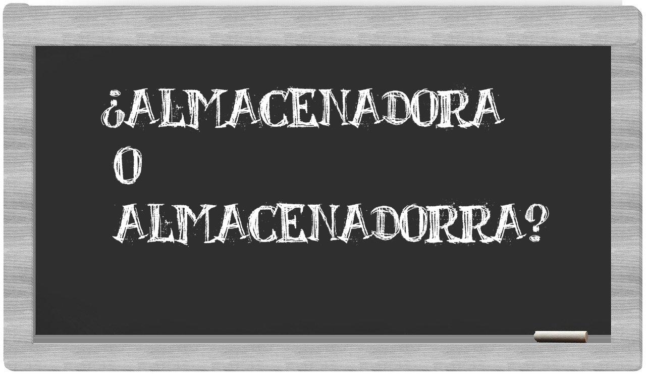 Cuando se presenta la comparación entre almacenadora y almacenadorra, no hay espacio para la indecisión, pues únicamente almacenadora se encuentra correctamente redactada; almacenadorra, por otro lado, no se halla registrada en el Diccionario de la Real Academia Española.