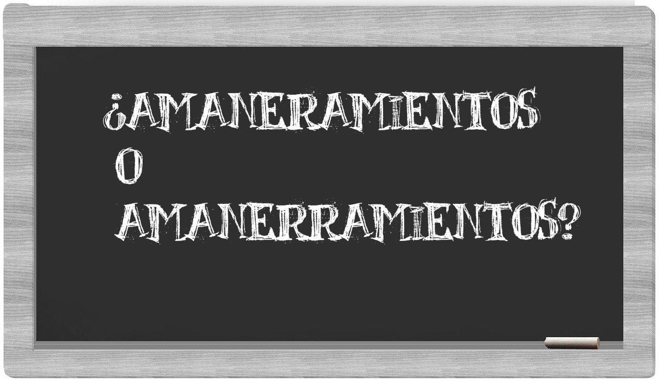 En la particular discusión que surge entre los términos amaneramientos y amanerramientos, es fundamental que permanezcas seguro, puesto que únicamente amaneramientos presenta la ortografía adecuada; por otro lado, amanerramientos no se encuentra registrada en el Diccionario de la Real Academia Española.