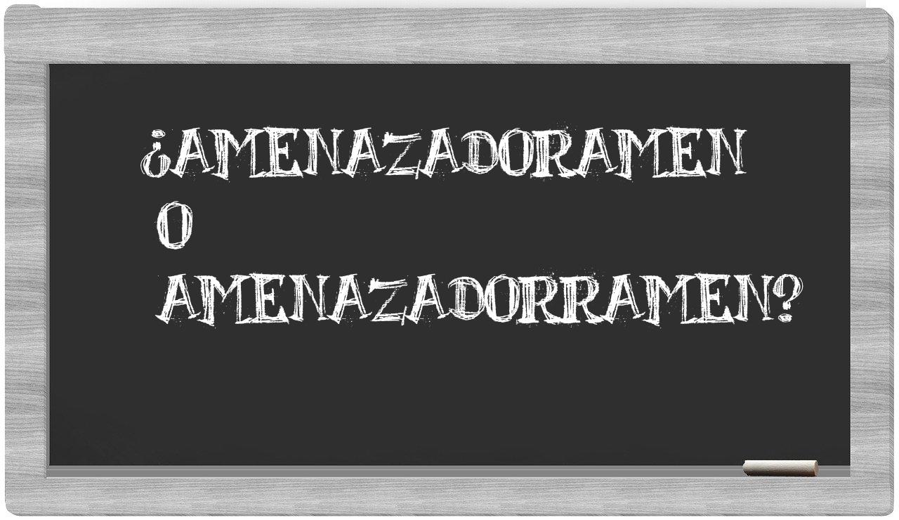 Cuando se trata de las palabras amenazadoramen y amenazadorramen, no deberías titubear, puesto que únicamente amenazadoramen es la que se presenta correctamente, mientras que amenazadorramen no se encuentra registrada en el Diccionario de la Real Academia Española.