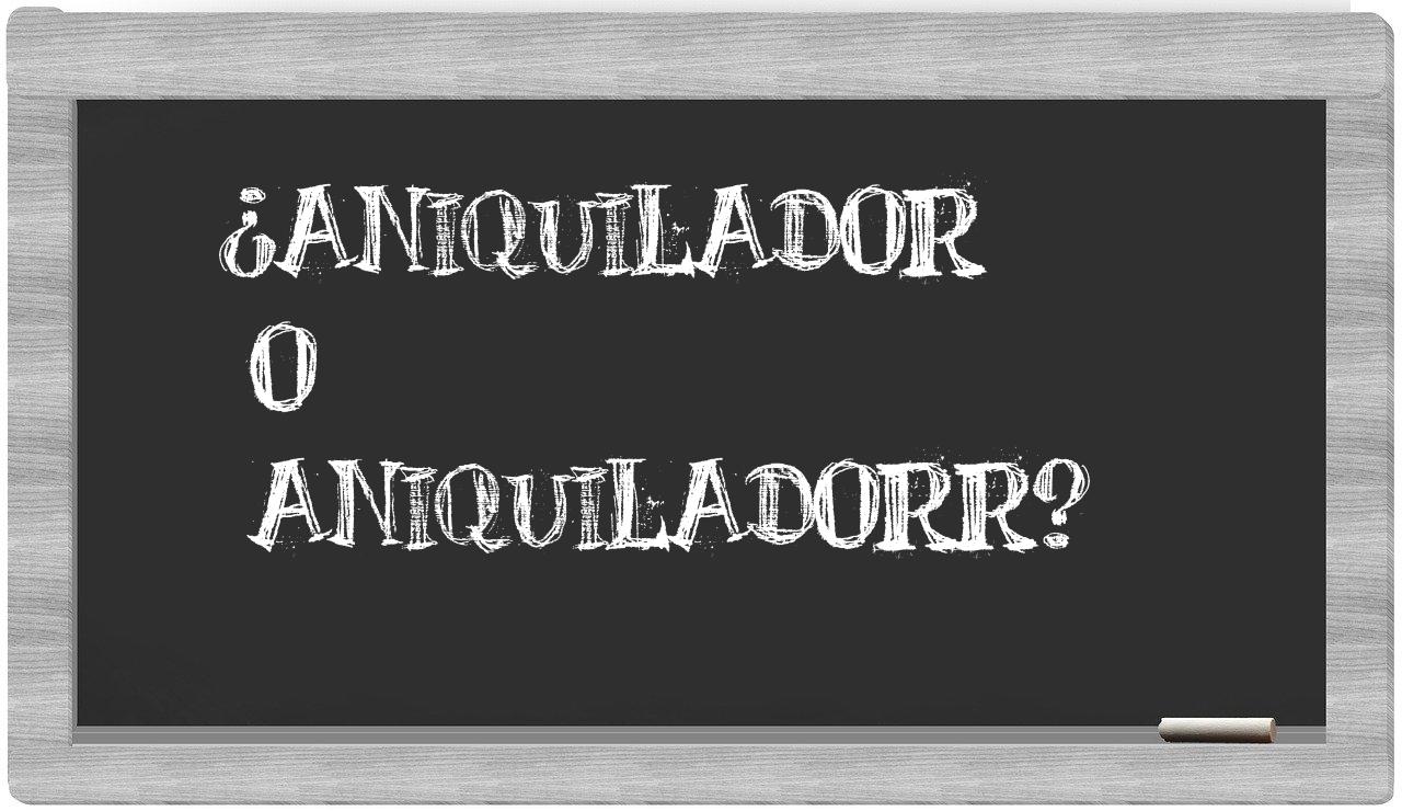 En la situación específica que involucra los términos aniquilador y aniquiladorr, no deberías titubear, pues únicamente aniquilador se encuentra debidamente redactada. Por otro lado, aniquiladorr no se halla en el léxico de la Real Academia de la Lengua.