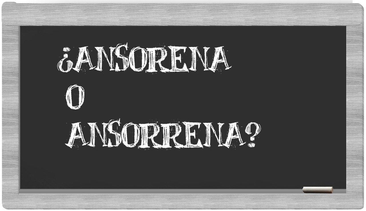 Cuando te encuentres entre los términos ansorena y ansorrena, no vaciles en tu elección, puesto que únicamente ansorena es la forma adecuada; de hecho, ansorrena no se encuentra registrada en el Diccionario de la Real Academia Española.
