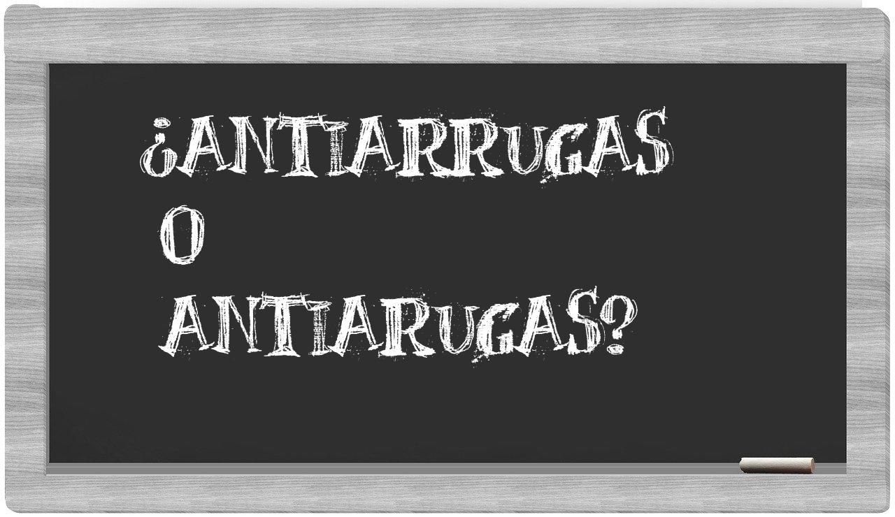 Cuando se trata de la distinción entre antiarrugas y antiarugas, es fundamental que no titubees, puesto que solo antiarrugas se encuentra debidamente registrada como correcta. Por otro lado, antiarugas no figura en el prestigioso Diccionario de la Real Academia Española.