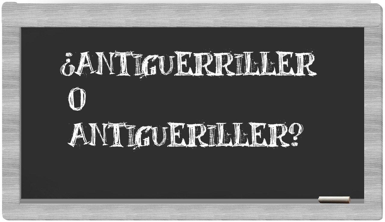 En la situación particular que involucra los términos antiguerriller y antigueriller, es fundamental que no albergues confusiones, dado que solo antiguerriller se encuentra correctamente redactada. Por otro lado, antigueriller carece de reconocimiento en el Diccionario de la Real Academia Española.