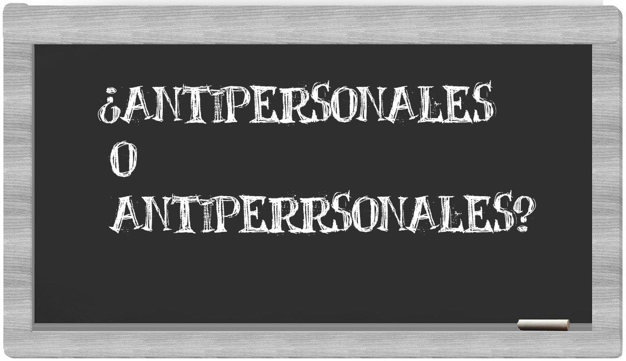 En la situación específica que involucra los términos antipersonales y antiperrsonales, no deberías titubear, pues únicamente antipersonales se encuentra debidamente redactada. Por otro lado, antiperrsonales no se halla en el léxico de la Real Academia de la Lengua.