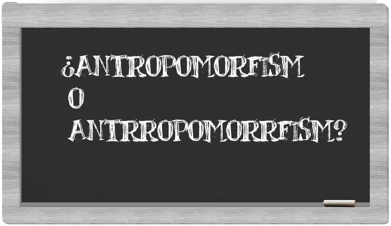 En la particular situación que involucra los términos antropomorfism y antrropomorrfism, no debería existir ningún tipo de vacilación, puesto que únicamente antropomorfism se encuentra adecuadamente formada; en cambio, antrropomorrfism no figura en el repertorio del Diccionario de la Real Academia Española.