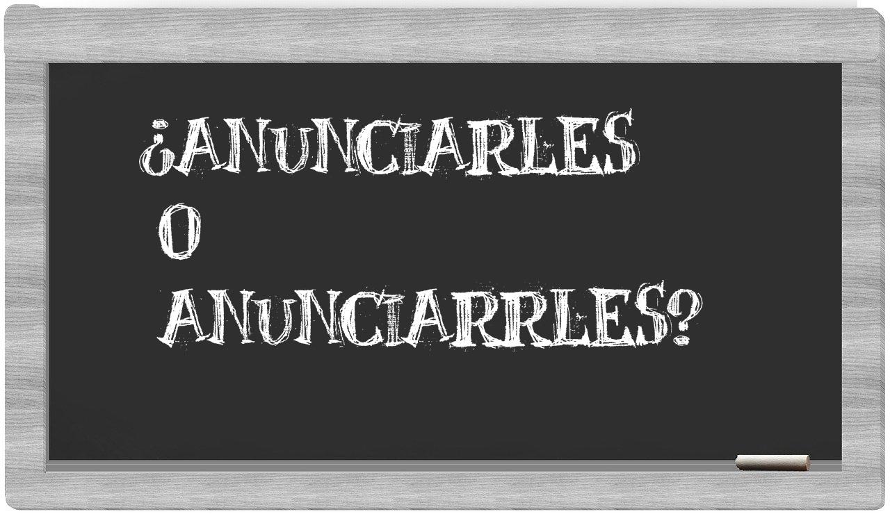 Al considerar la relación entre anunciarles y anunciarrles, no hay lugar para la incertidumbre, porque únicamente anunciarles se encuentra debidamente registrada. Por otro lado, anunciarrles no figura en el repertorio de la Real Academia Española.