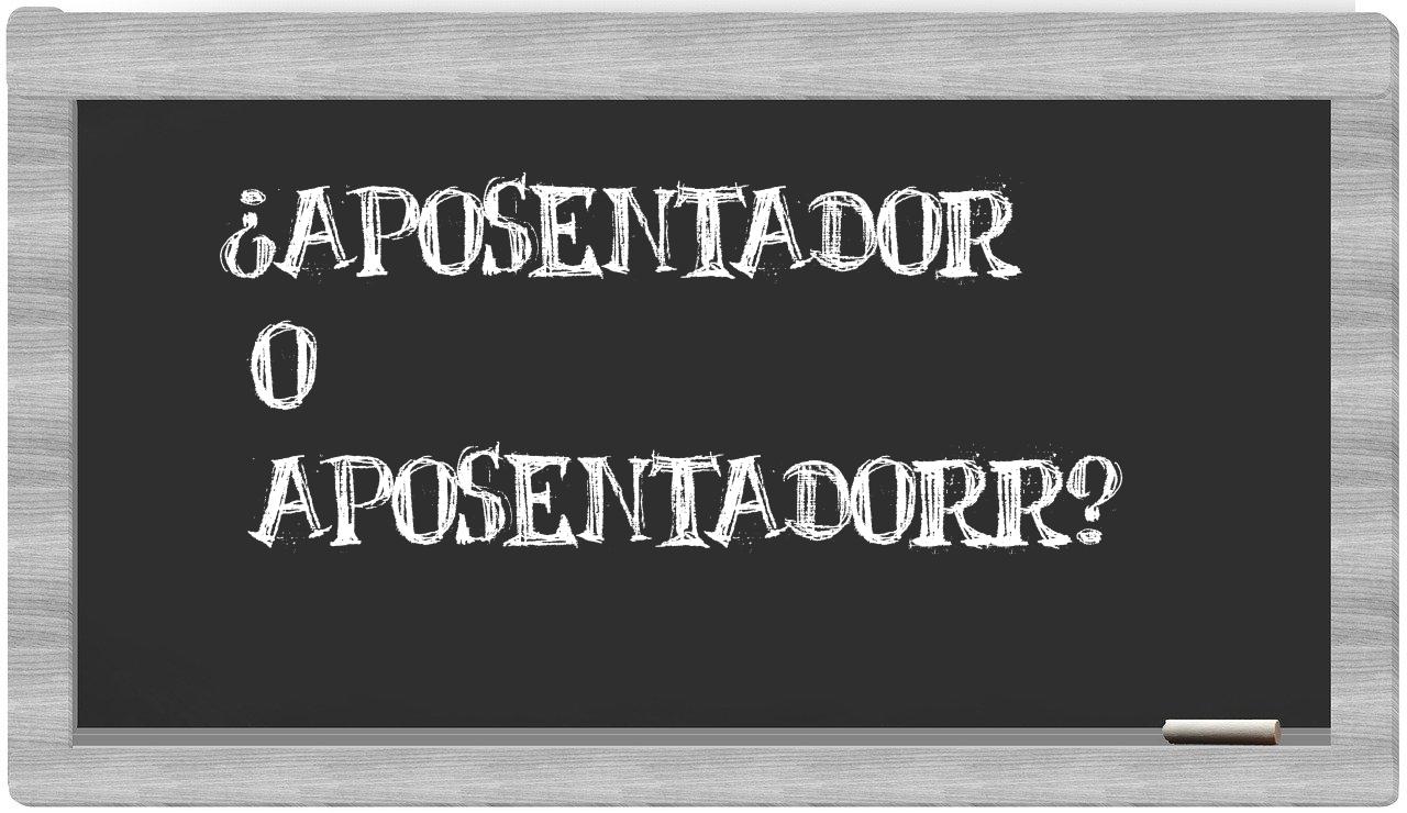 En la situación particular que involucra los términos aposentador y aposentadorr, no deberías titubear en ningún momento, pues únicamente aposentador es el que se encuentra debidamente redactado. El término aposentadorr no figura en el Diccionario de la Real Academia Española.