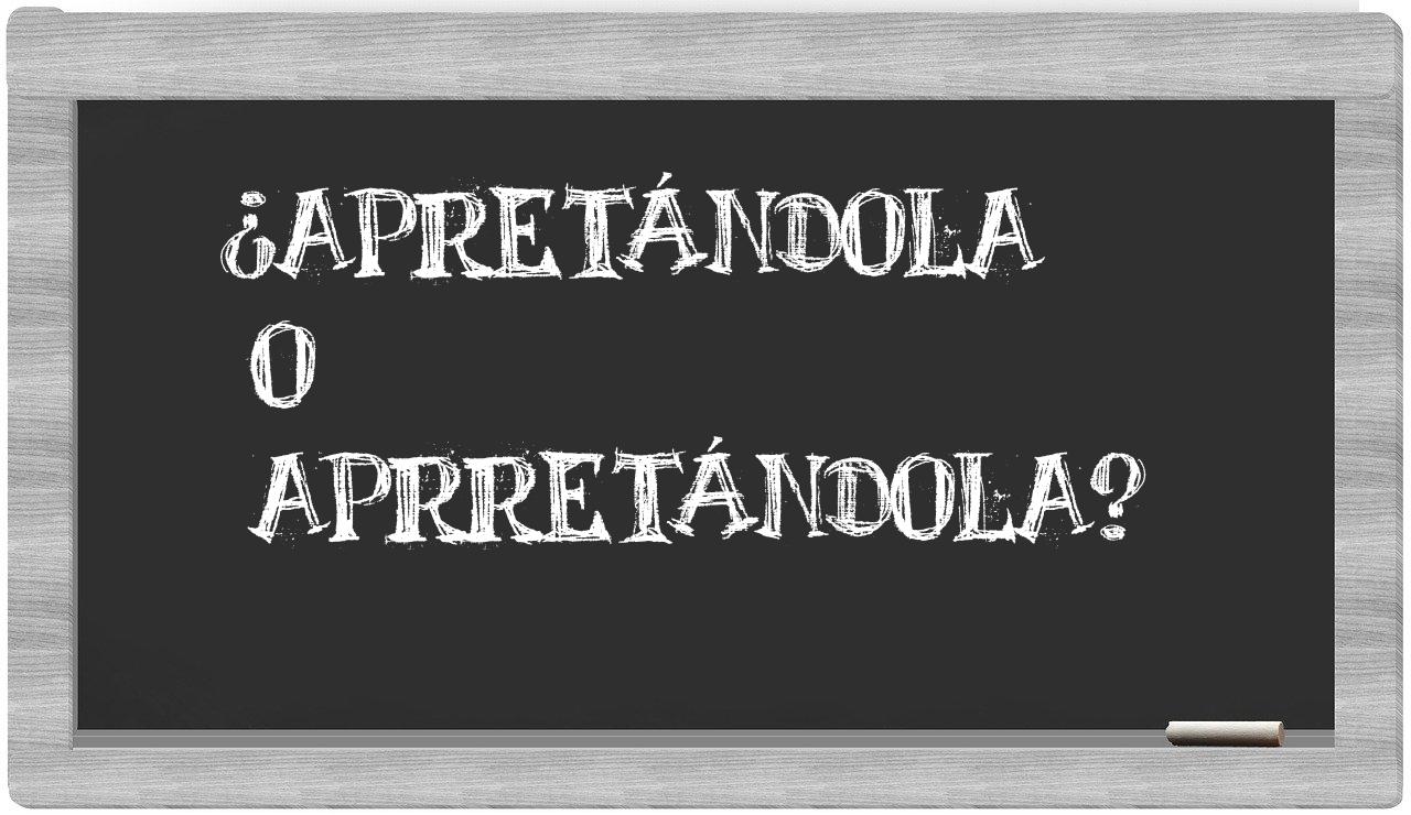 Cuando te encuentres entre los términos apretándola y aprretándola, no vaciles en tu elección, puesto que únicamente apretándola es la forma adecuada; de hecho, aprretándola no se encuentra registrada en el Diccionario de la Real Academia Española.