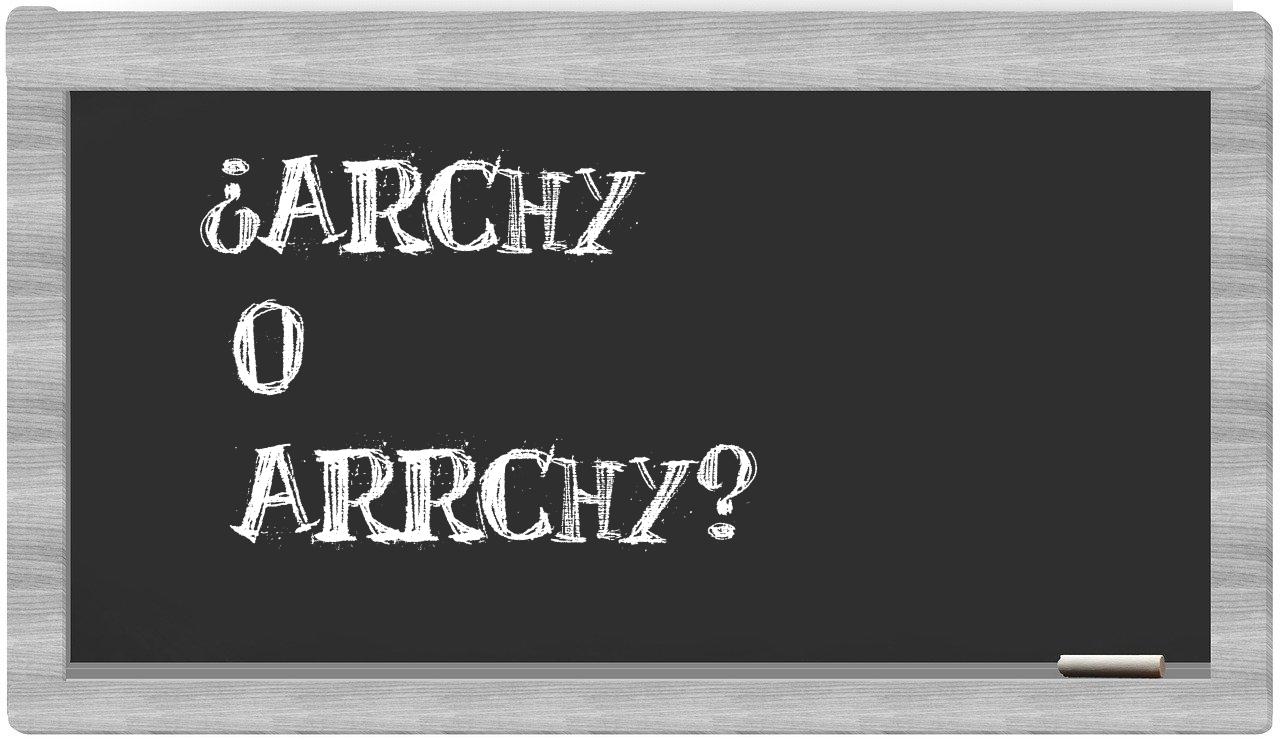 Cuando te enfrentes a la comparación entre archy y arrchy, es crucial que no vaciles, pues únicamente archy se escribe de manera adecuada. Por otra parte, arrchy no se encuentra registrada en el Diccionario de la Real Academia Española.