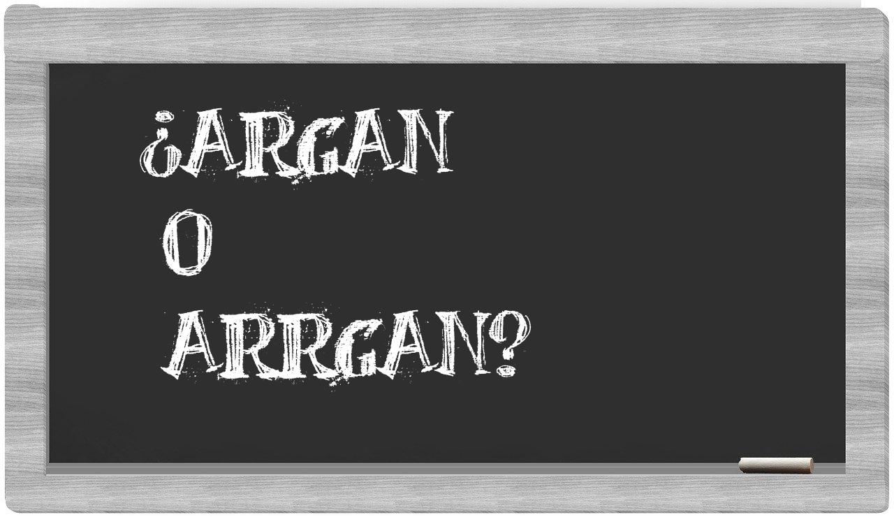 Cuando se trata del dilema entre argan y arrgan, no hay lugar para la incertidumbre, dado que solamente argan se encuentra adecuadamente formalizada en nuestra lengua, mientras que arrgan carece de reconocimiento en el Diccionario de la Real Academia Española.