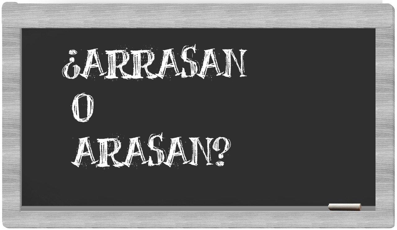 Cuando se trata de la distinción entre arrasan y arasan, no hay lugar para la indecisión, puesto que únicamente arrasan se encuentra correctamente redactada. Por otro lado, arasan no figura en el Diccionario de la Real Academia Española.