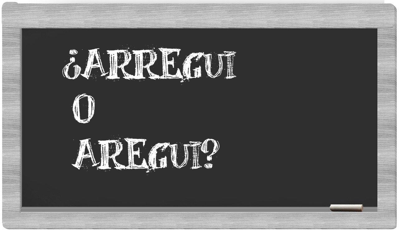 Cuando se presenta la disyuntiva entre arregui y aregui, la elección siempre es clara, pues únicamente arregui se encuentra registrada de manera adecuada; en cambio, aregui no tiene cabida en el Diccionario de la Real Academia Española.