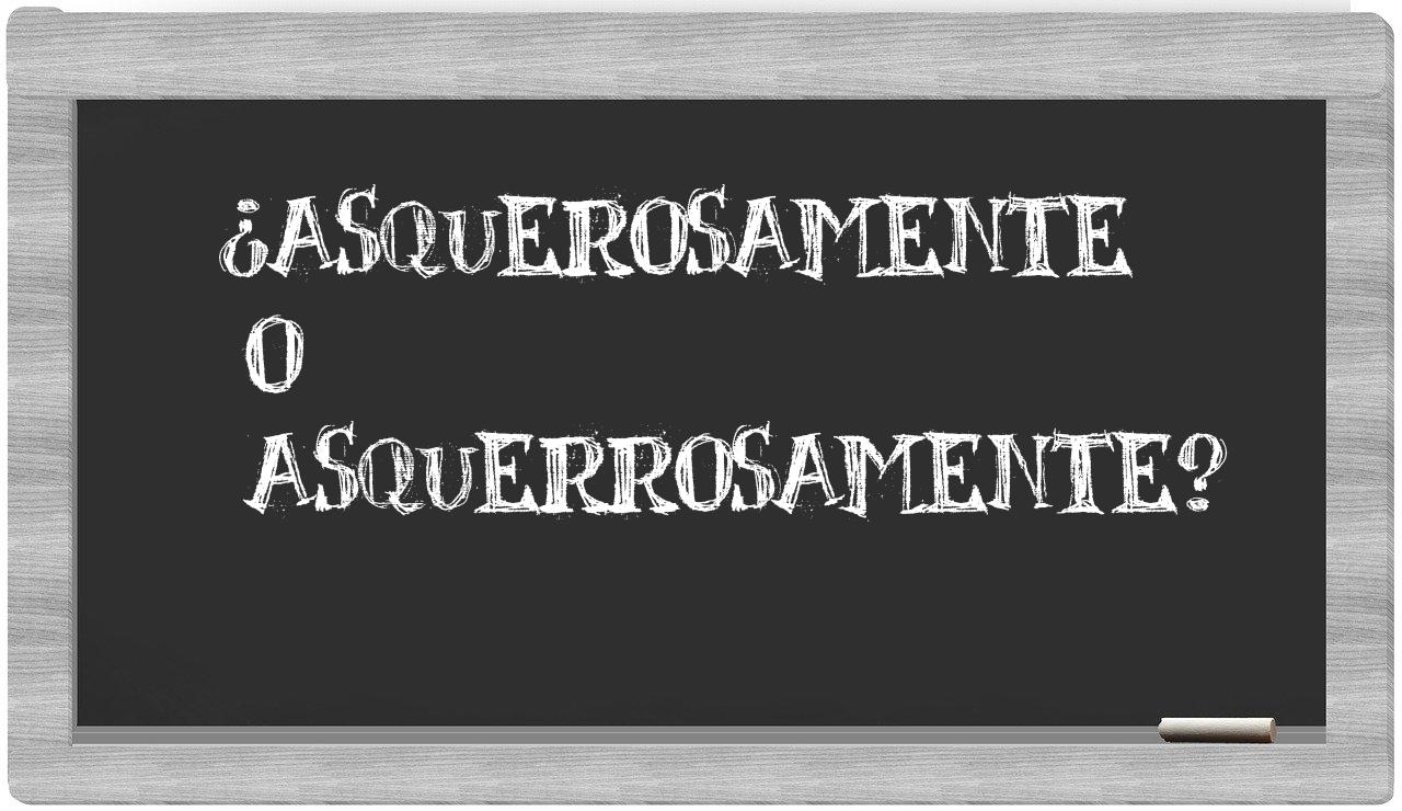 En la particular situación que involucra los términos asquerosamente y asquerrosamente, no deberías experimentar ninguna incertidumbre, ya que es únicamente asquerosamente el que se presenta con la ortografía correcta, mientras que asquerrosamente carece de reconocimiento en el Diccionario de la Real Academia Española.