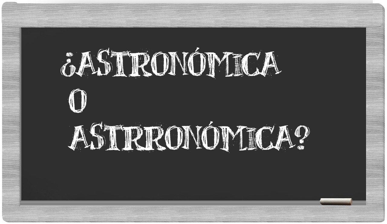 Cuando se presenta la disyuntiva entre astronómica y astrronómica, la elección siempre es clara, pues únicamente astronómica se encuentra registrada de manera adecuada; en cambio, astrronómica no tiene cabida en el Diccionario de la Real Academia Española.