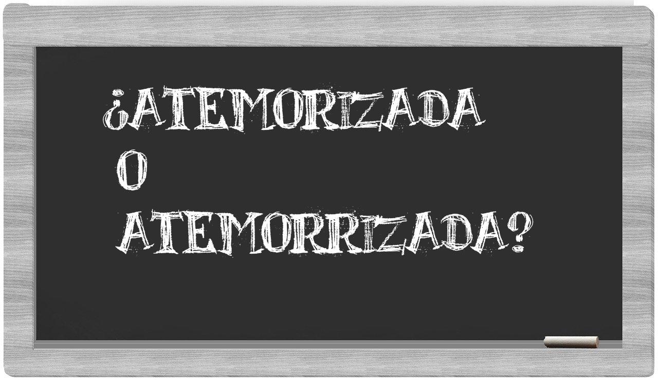 Respecto a la elección entre atemorizada y atemorrizada, es fundamental que no vaciles, puesto que únicamente atemorizada es la opción que se encuentra correctamente validada. Por otra parte, atemorrizada no se halla registrada en el Diccionario de la Real Academia Española.