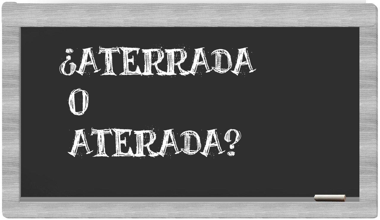 Respecto a la elección entre aterrada y aterada, es fundamental que no vaciles, puesto que únicamente aterrada es la opción que se encuentra correctamente validada. Por otra parte, aterada no se halla registrada en el Diccionario de la Real Academia Española.