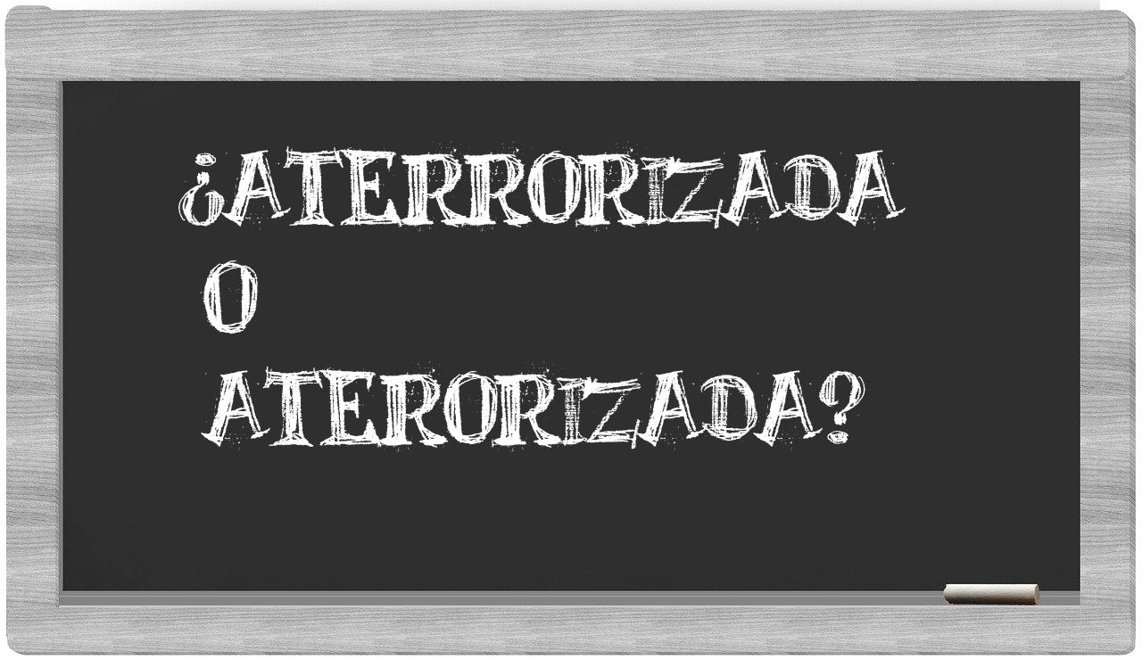 Cuando se trata de las palabras aterrorizada y aterorizada, la elección debería ser clara y sin hesitaciones, pues únicamente aterrorizada es la forma aceptada y reconocida, mientras que aterorizada no se encuentra registrada en el Diccionario de la Real Academia Española.