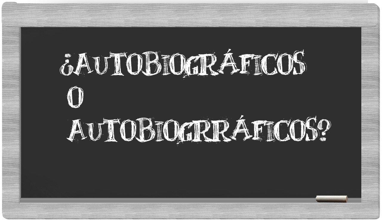 En la situación particular que involucra los términos autobiográficos y autobiogrráficos, la elección no debería generar confusión alguna, puesto que únicamente autobiográficos se encuentra debidamente registrada y aceptada. Por otro lado, autobiogrráficos no figura en el diccionario oficial de la Real Academia Española.