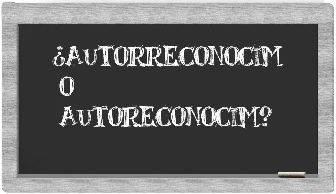 En la particular relación que existe entre los términos autorreconocim y autoreconocim, no deberías titubear en ningún momento, puesto que únicamente autorreconocim es la opción que se encuentra debidamente registrada y validada. Por otro lado, autoreconocim no figura en el repertorio del Diccionario de la Real Academia Española.