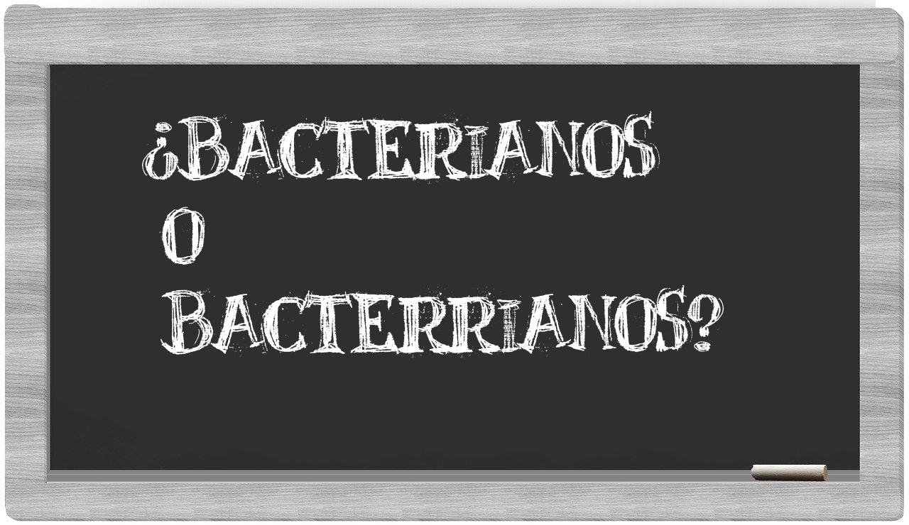 En la situación específica que involucra bacterianos y bacterrianos, nunca deberías titubear, puesto que únicamente bacterianos es la que se encuentra correctamente formulada. Por otro lado, bacterrianos no existe en el Diccionario de la Real Academia Española.