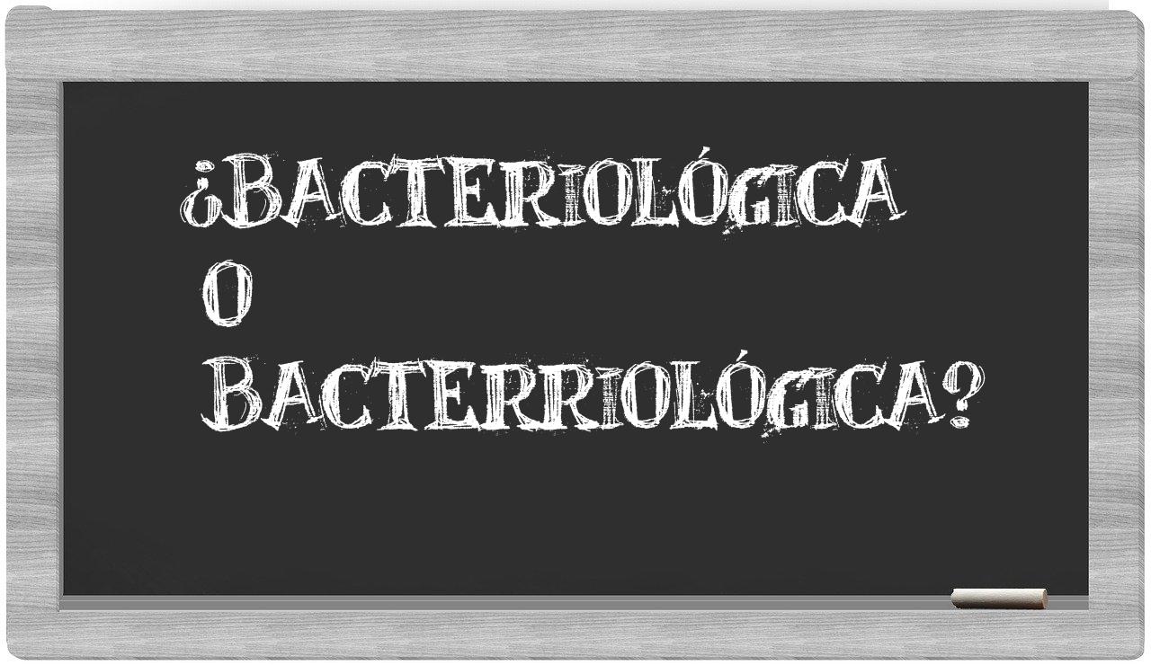 Cuando se trate de la elección entre bacteriológica y bacterriológica, no deberías titubear, pues únicamente bacteriológica es la opción que figura correctamente en el Diccionario de la Real Academia Española, mientras que bacterriológica carece de tal reconocimiento.