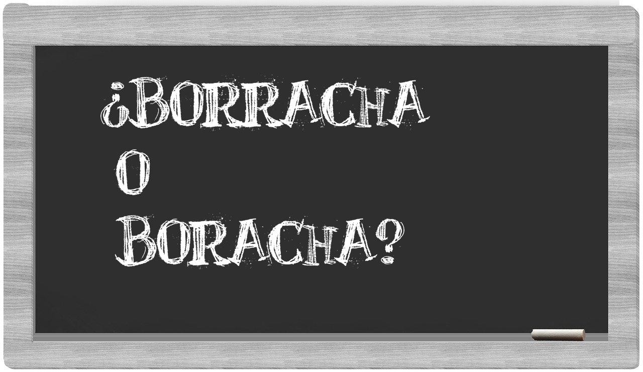 Al referirnos a la disyuntiva entre borracha y boracha, es fundamental no caer en confusiones, puesto que únicamente borracha cuenta con una redacción apropiada. Por otro lado, boracha no figura en el venerado Diccionario de la Real Academia Española.