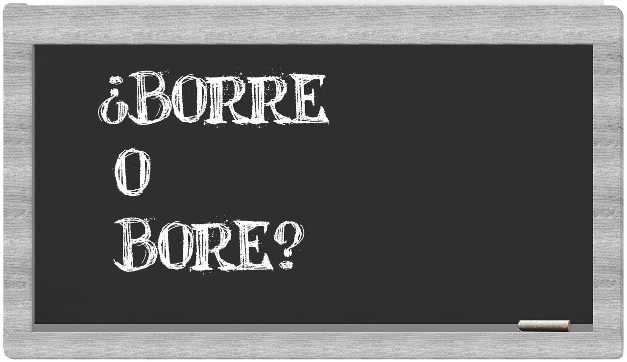 En la particular situación que se presenta entre los términos borre y bore, la elección es indiscutible, porque únicamente borre se encuentra debidamente asentada en la norma, mientras que bore no figura en el Diccionario de la Real Academia Española.