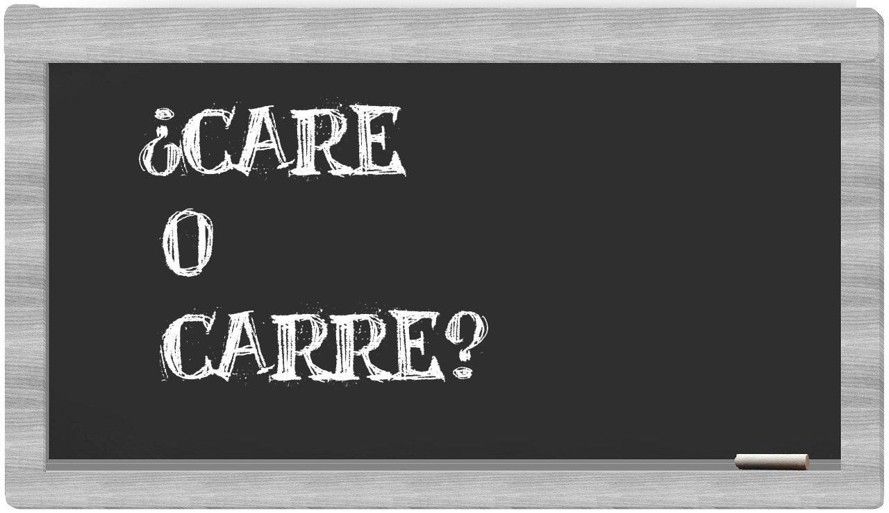 Cuando se trata de la distinción entre care y carre, no hay lugar para la incertidumbre, puesto que únicamente care se encuentra registrada adecuadamente. Por el contrario, carre no figura en el Diccionario de la Real Academia Española.