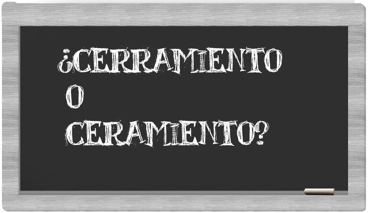 Cuando se presenta la disyuntiva entre cerramiento y ceramiento, la elección siempre es clara, pues únicamente cerramiento se encuentra registrada de manera adecuada; en cambio, ceramiento no tiene cabida en el Diccionario de la Real Academia Española.