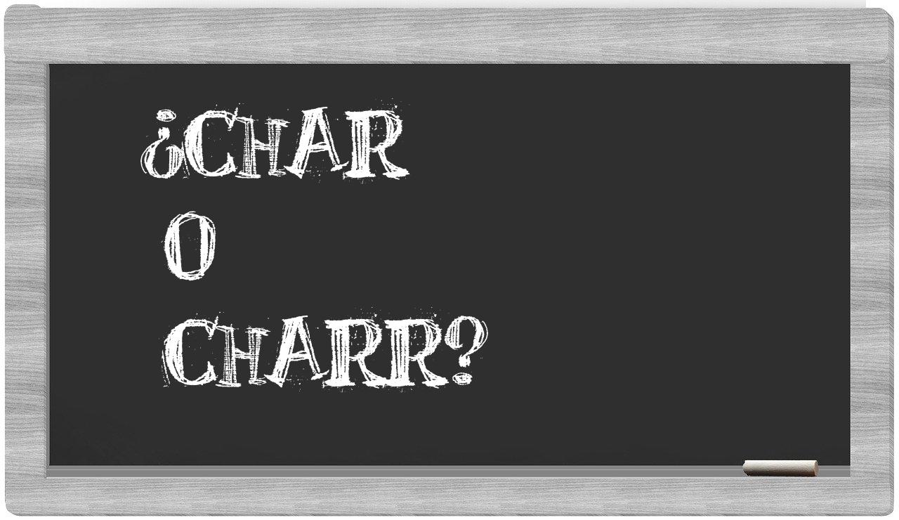 Cuando se trata de la distinción entre char y charr, no cabe ninguna duda: solo char se encuentra correctamente redactada. Por otro lado, charr no figura en el Diccionario de la Real Academia Española.