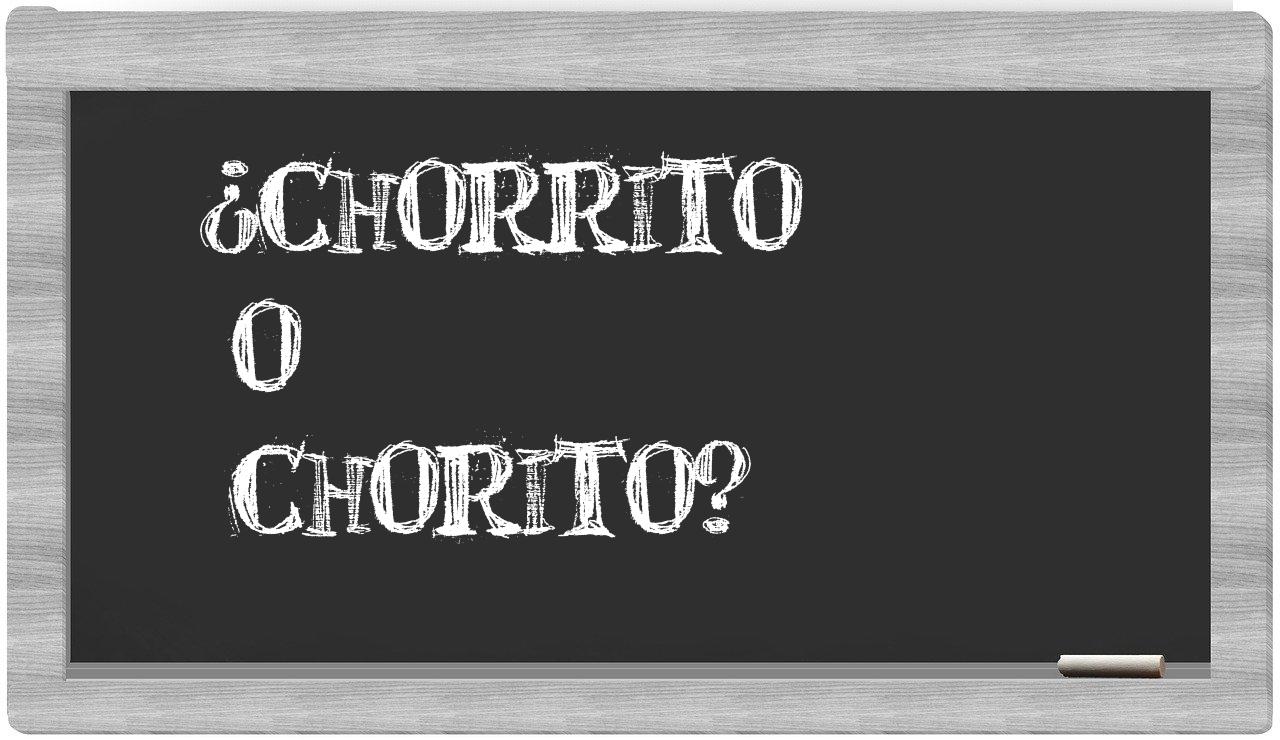 Cuando nos enfrentamos a la elección entre chorrito y chorito, la decisión debería ser sencilla, pues únicamente chorrito se encuentra registrada como correcta. La forma chorito no está contemplada en el Diccionario de la Real Academia Española.