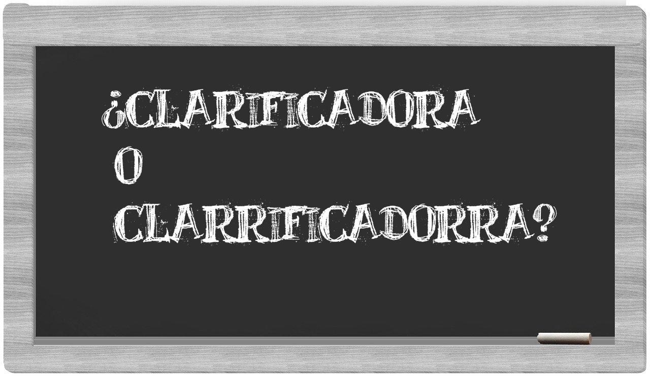 Cuando te encuentres en la situación de elegir entre clarificadora y clarrificadorra, es fundamental que no vaciles, puesto que únicamente clarificadora es la opción adecuada. Ten en cuenta que clarrificadorra no está reconocida por el Diccionario Oficial de la Real Academia Española.