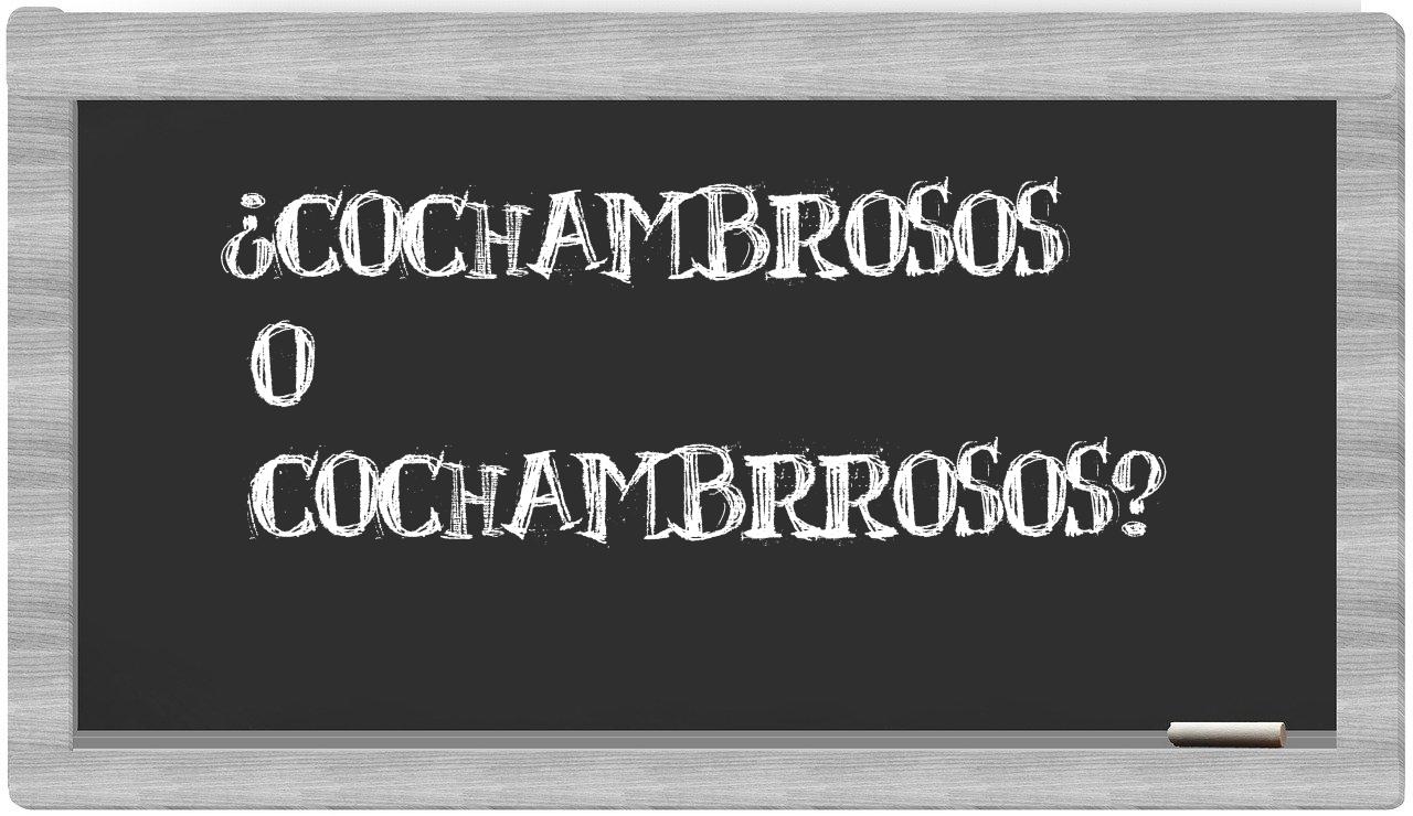 Cuando te encuentres frente a las palabras cochambrosos y cochambrrosos, no deberías titubear en tu elección, puesto que únicamente cochambrosos se encuentra debidamente registrada; en cambio, cochambrrosos no figura en el repertorio del Diccionario de la Real Academia Española.
