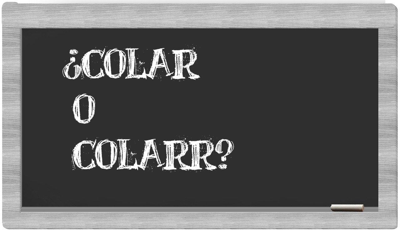 En la situación particular de las voces colar y colarr, no debería haber lugar a la incertidumbre, puesto que únicamente colar se encuentra debidamente plasmada en el Diccionario de la Real Academia Española, mientras que colarr carece de reconocimiento en su catálogo.