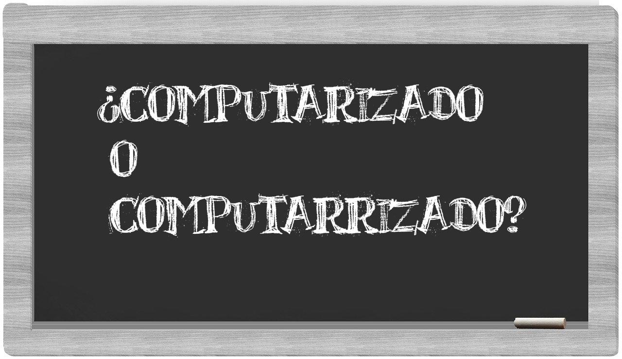 Cuando te encuentres frente a las palabras computarizado y computarrizado, no deberías titubear en tu elección, puesto que únicamente computarizado se encuentra debidamente registrada; en cambio, computarrizado no figura en el repertorio del Diccionario de la Real Academia Española.