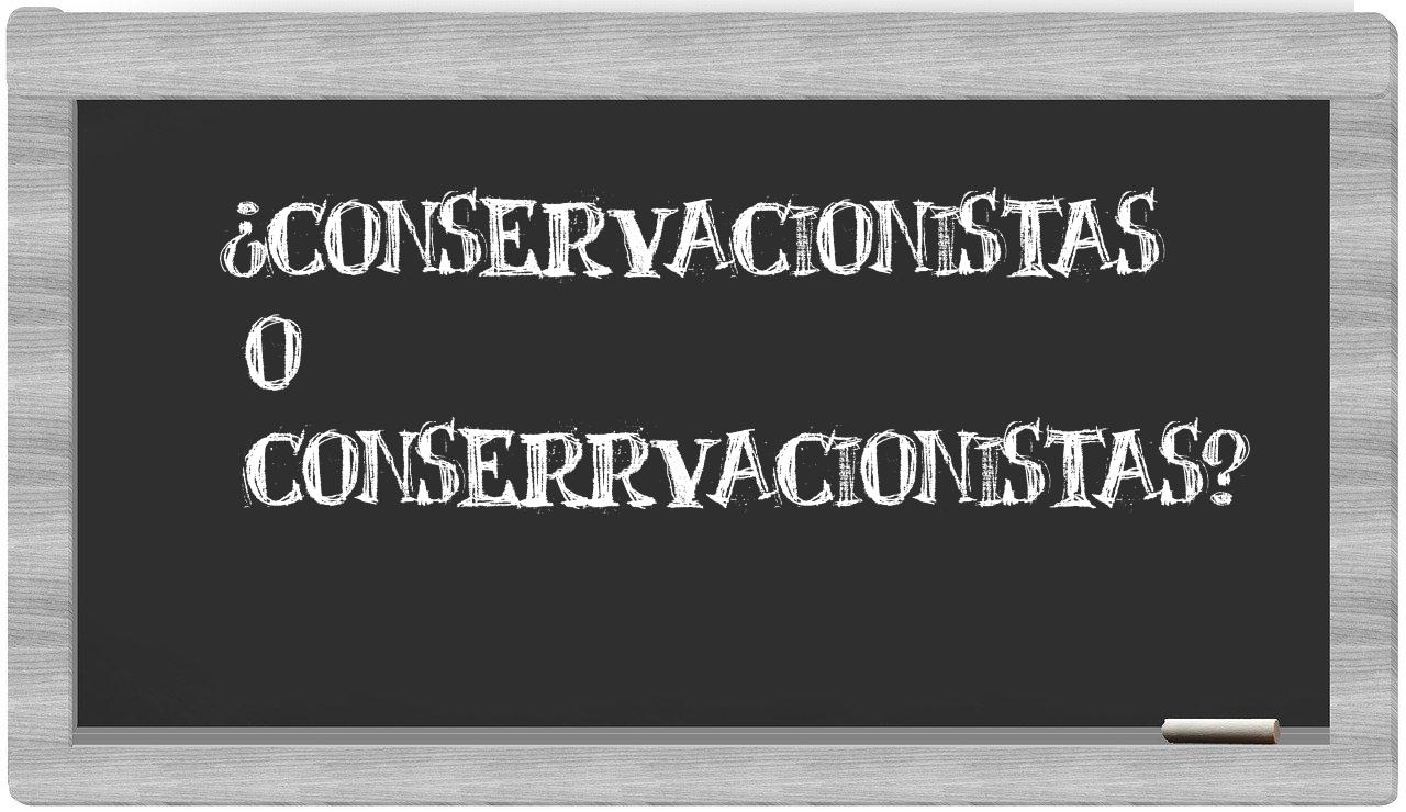 Cuando te encuentres ante la disyuntiva entre conservacionistas y conserrvacionistas, no vaciles en tu elección, puesto que solo conservacionistas es la correcta; de hecho, conserrvacionistas ni siquiera figura en el Diccionario de la Real Academia Española.