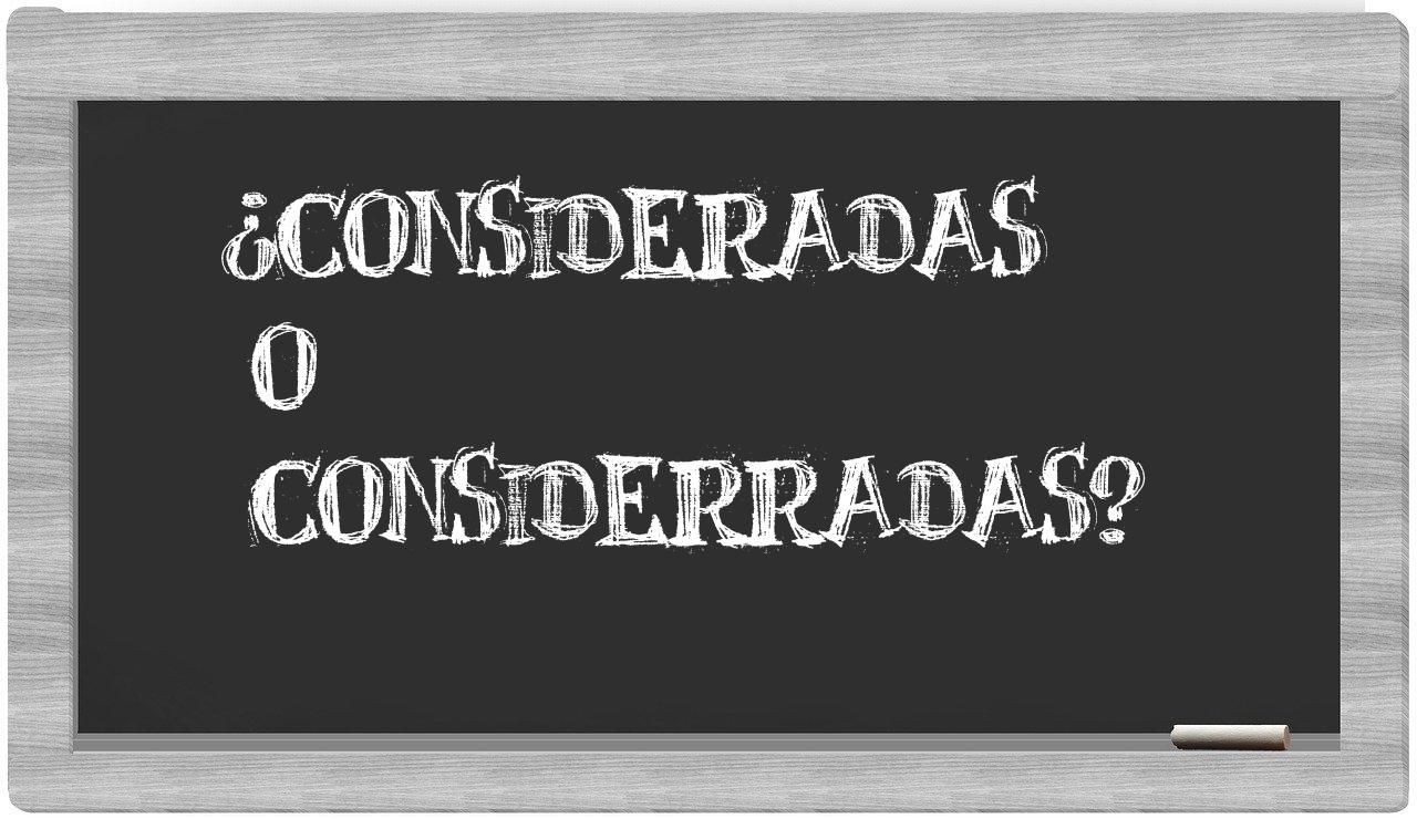 Cuando se presenta la distinción entre consideradas y considerradas, no hay lugar para la incertidumbre, puesto que únicamente consideradas es la forma adecuada. Por otro lado, considerradas no se encuentra registrada en el Diccionario de la Real Academia Española.