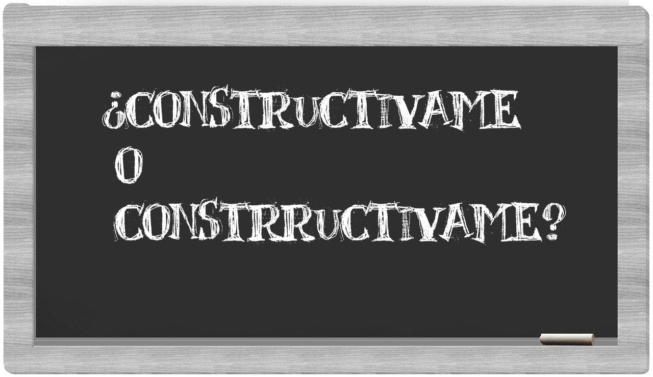 Respecto a la comparación entre constructivame y constrructivame, no hay lugar para la incertidumbre, puesto que únicamente constructivame se encuentra registrado de manera adecuada. Por otro lado, constrructivame no figura en el Diccionario de la Real Academia Española.