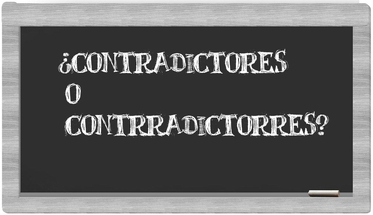 En la situación particular que involucra los términos contradictores y contrradictorres, la elección es clara y no debe suscitar incertidumbres, puesto que únicamente contradictores se encuentra debidamente registrada en el Diccionario de la Real Academia Española, mientras que contrradictorres carece de reconocimiento en el mismo.