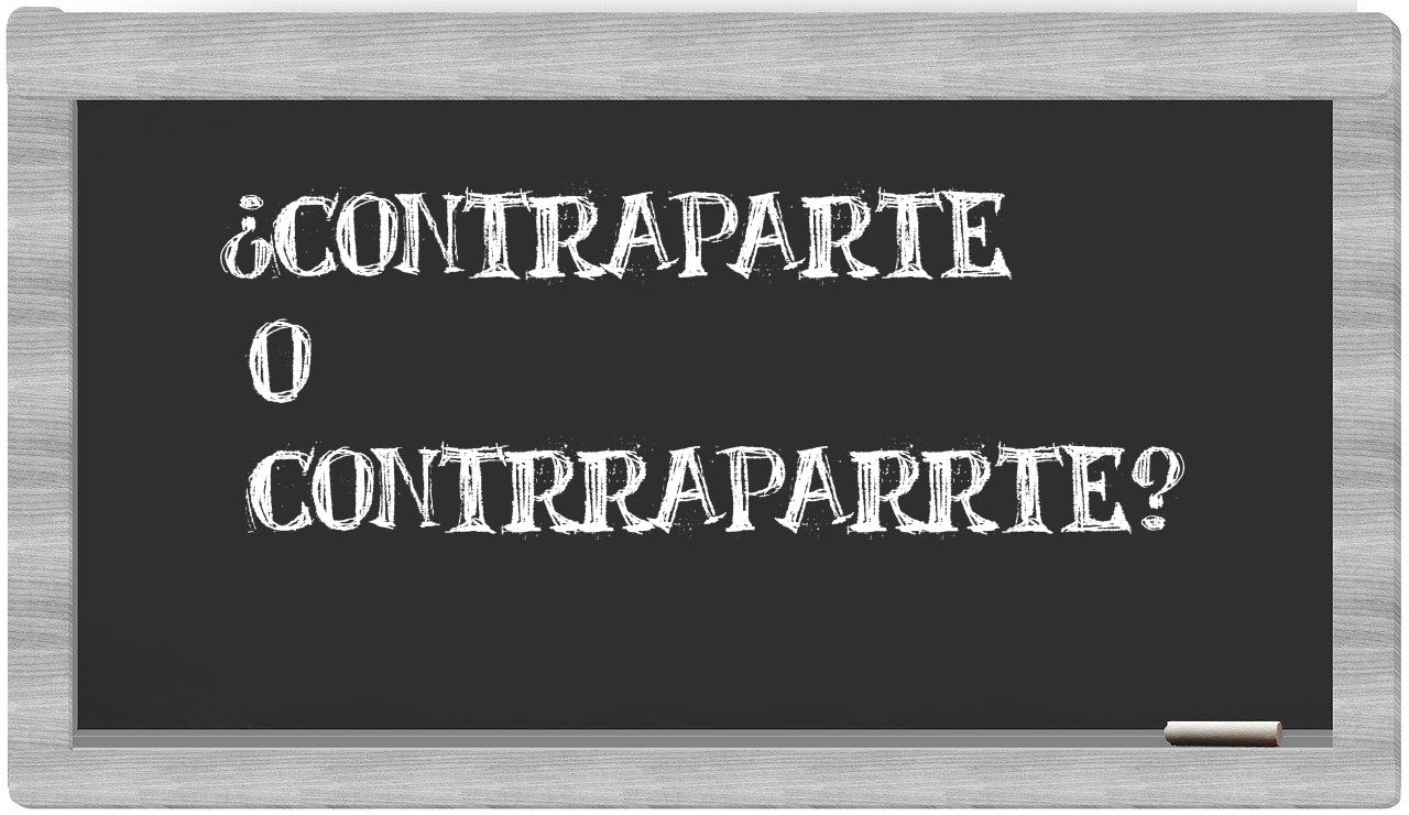 En lo que respecta a la relación que existe entre contraparte y contrraparrte, no hay lugar para la incertidumbre, puesto que únicamente contraparte se encuentra reflejado de manera acertada en el léxico, mientras que contrraparrte carece de presencia en el Diccionario de la Real Academia Española.