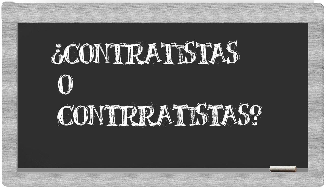 En la situación particular entre los términos contratistas y contrratistas, no deberías titubear en absoluto, porque únicamente contratistas es la forma adecuada, mientras que contrratistas se encuentra ausente en el Diccionario de la Real Academia Española.