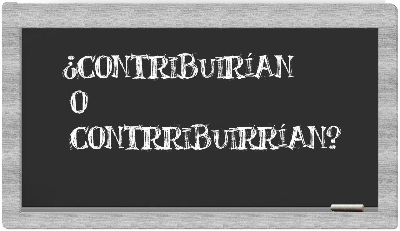 Cuando se trata de elegir entre contribuirían y contrribuirrían, no hay motivo para la indecisión, dado que únicamente contribuirían es la forma adecuada según las normas lingüísticas; por otro lado, contrribuirrían no figura en el vocabulario oficial de la Real Academia Española.