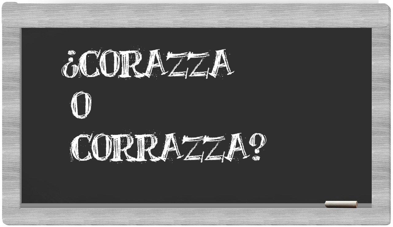 Cuando se trata del dilema entre corazza y corrazza, no hay lugar para la incertidumbre, dado que solamente corazza se encuentra adecuadamente formalizada en nuestra lengua, mientras que corrazza carece de reconocimiento en el Diccionario de la Real Academia Española.