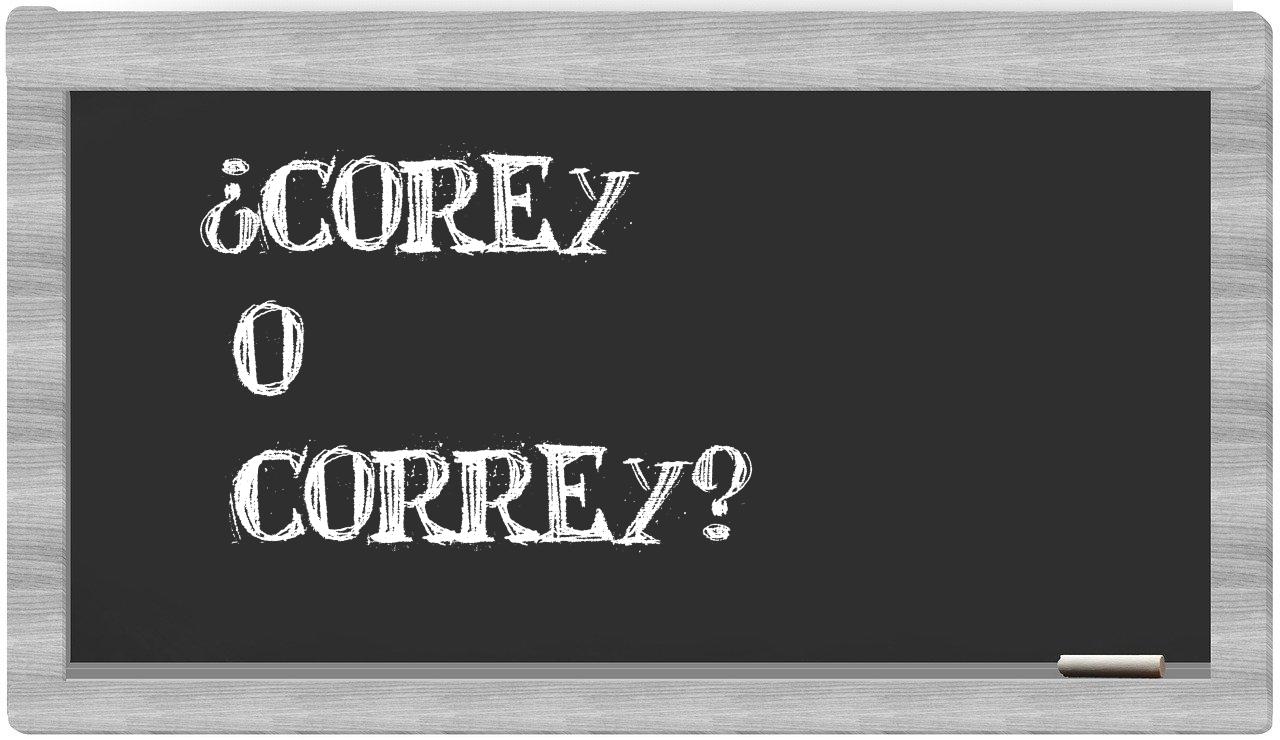 Cuando se trata de las palabras corey y correy, no hay espacio para la incertidumbre, pues únicamente corey está correctamente redactada; además, correy no figura en el Diccionario de la Real Academia Española.